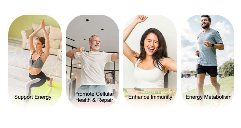 NAD+ is an essential coenzyme involved in cellular energy production and DNA repair. Supplementing with NAD+ may help support healthy aging, improve mitochondrial function, and enhance overall vitality and mental clarity.
